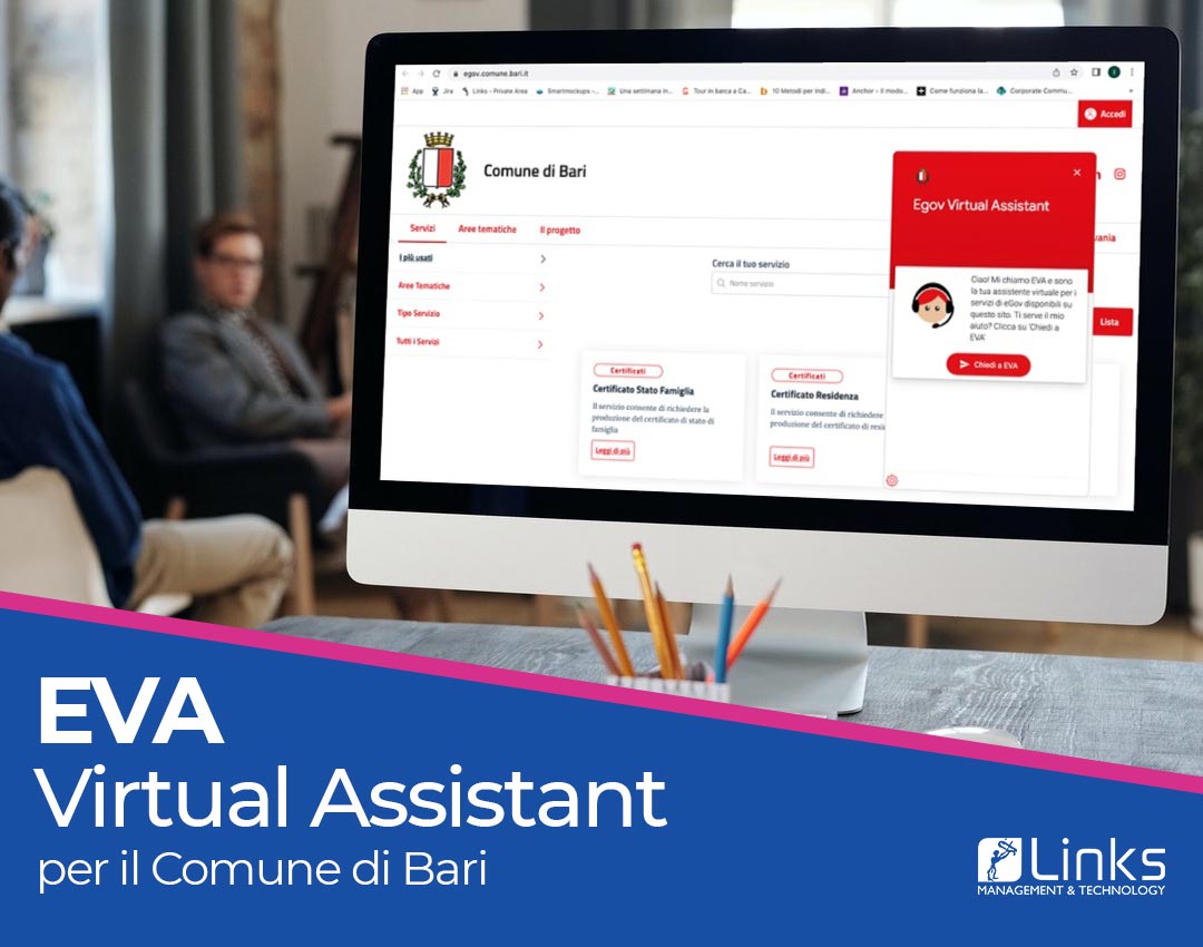 Il Comune di Bari ha presentato il chatbot Eva (Egov Virtual Assistant), il nuovo strumento multimediale, realizzato in collaborazione con Links, volto a semplificare le interazioni dei cittadini con i sistemi digitali dell'amministrazione comunale.