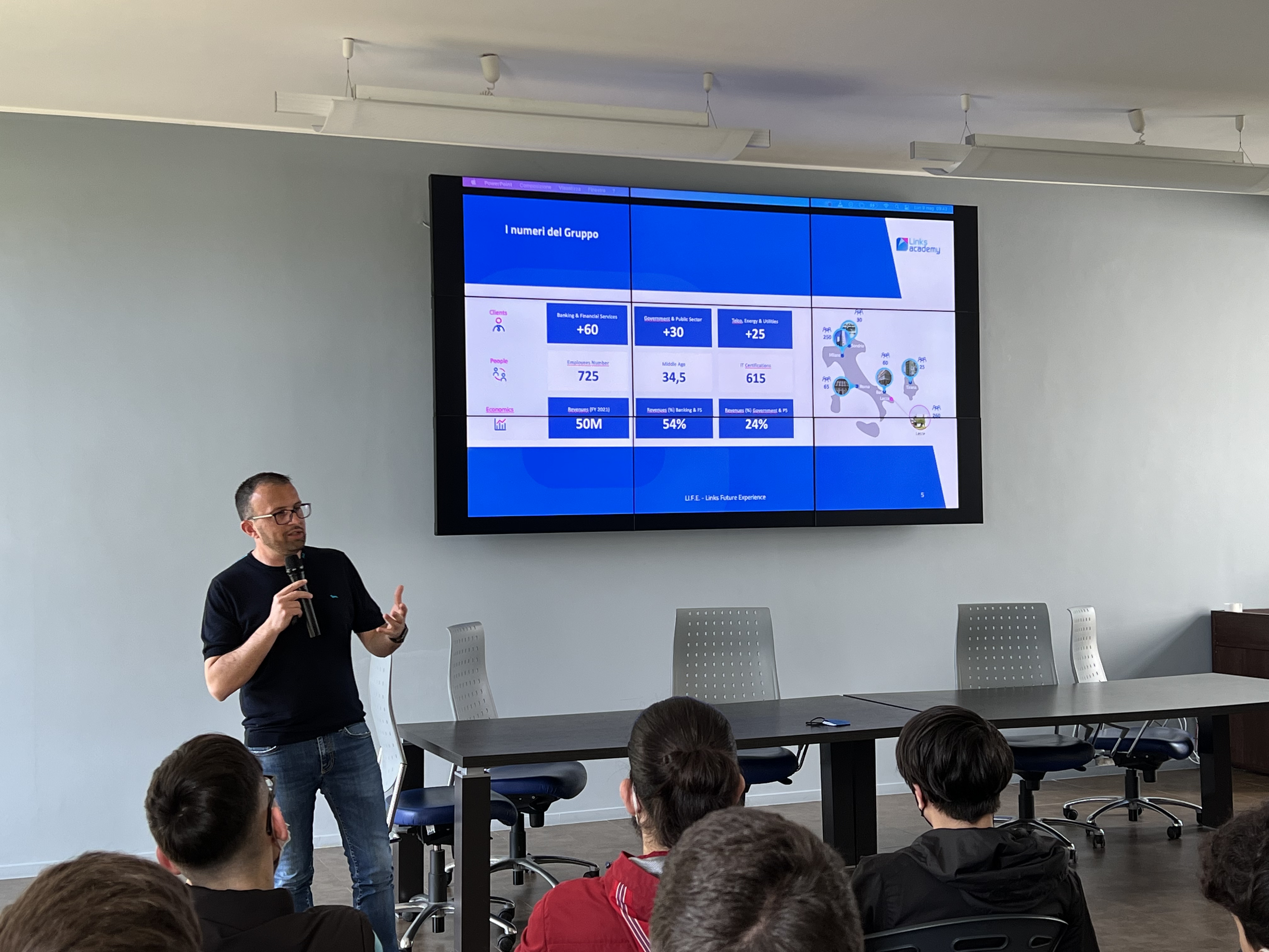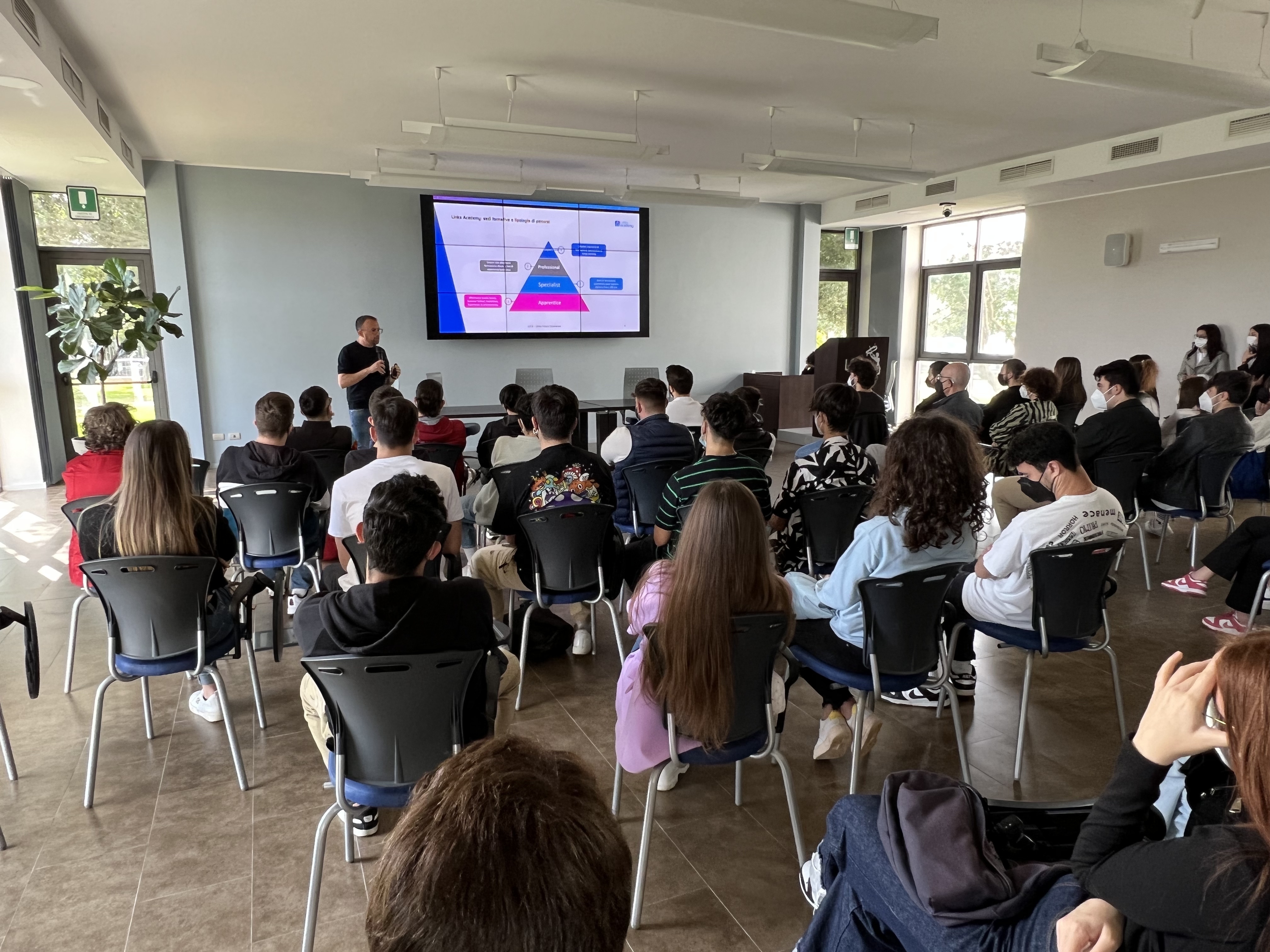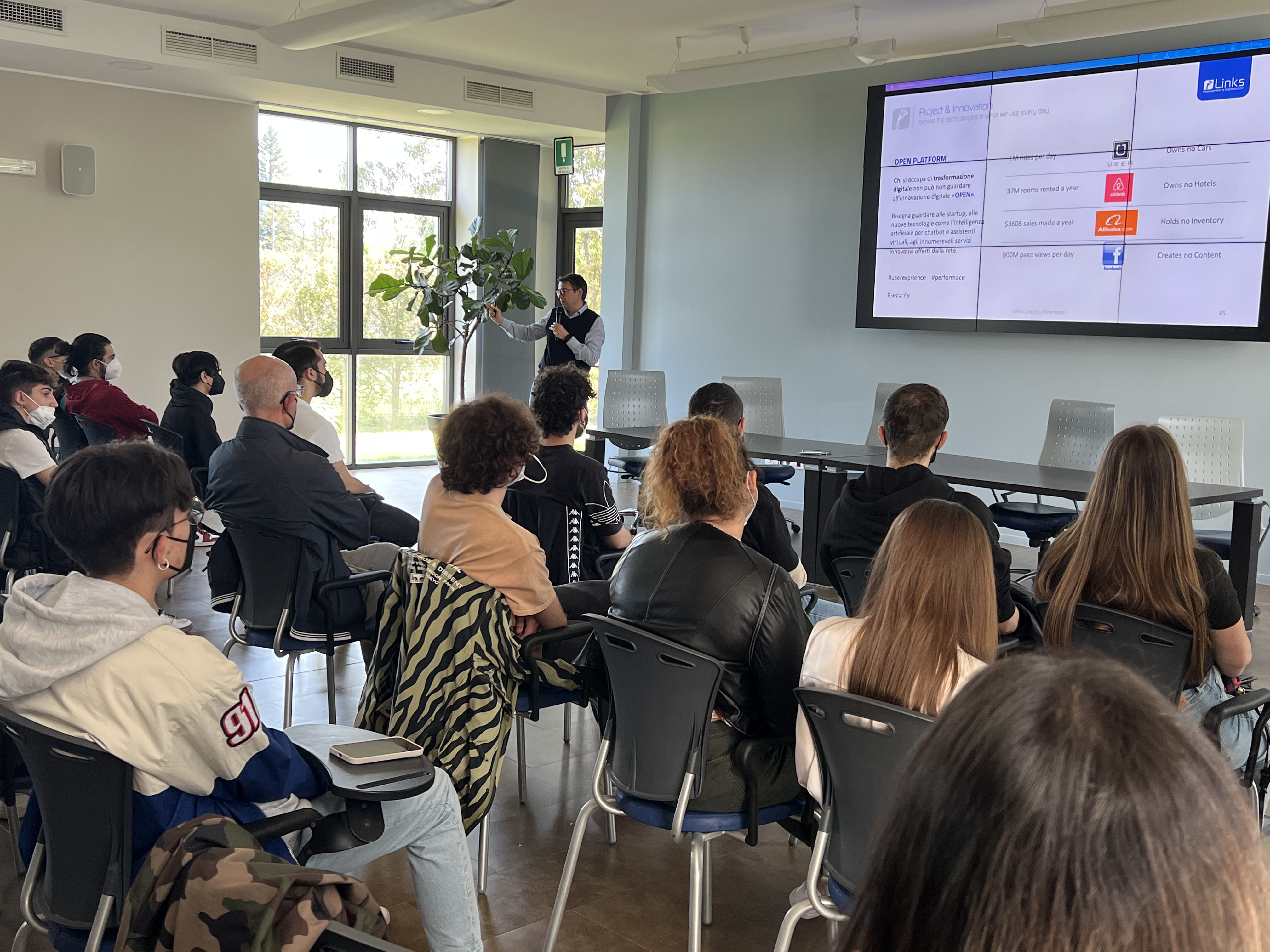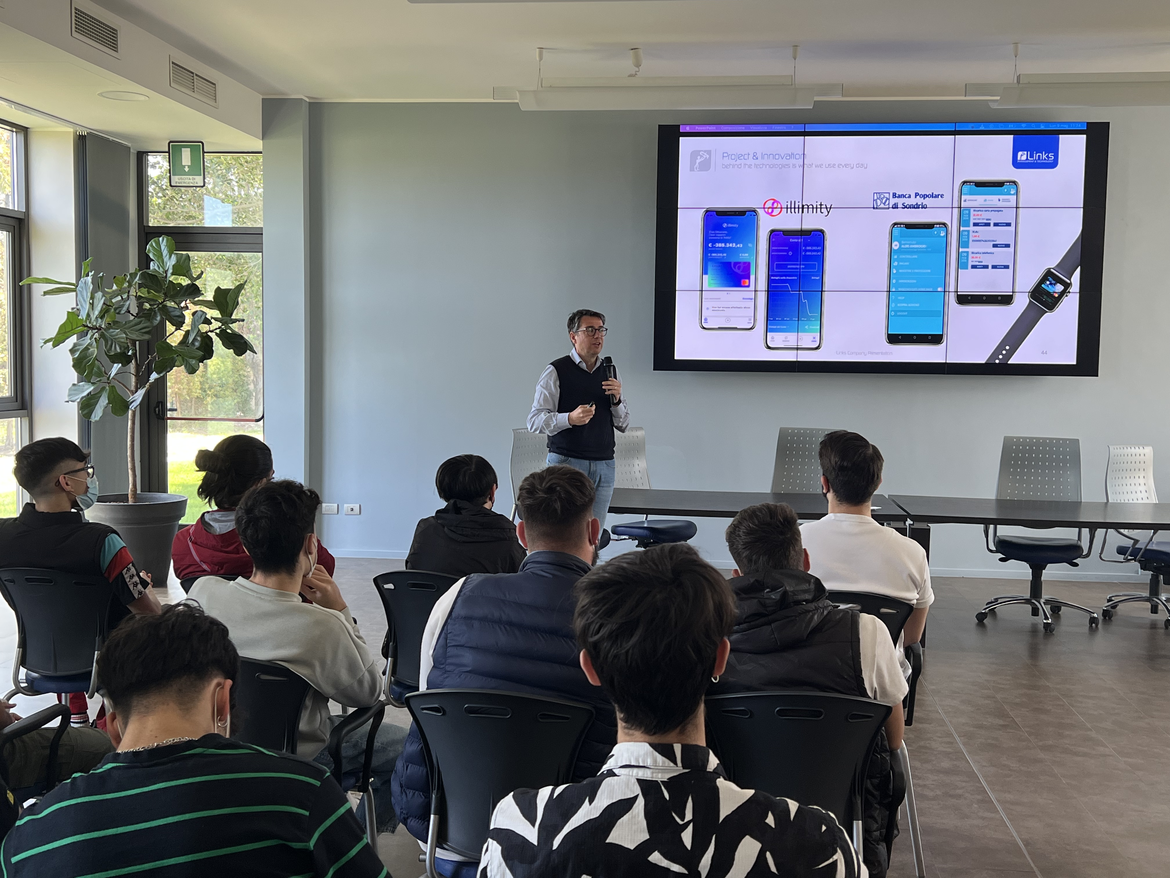 Nel corso della giornata di orientamento, i manager di Links hanno raccontato agli studenti i percorsi formativi e professionali all’interno delle Aziende del Gruppo, il fascino dell’innovazione da differenti prospettive, l’importanza delle tecnologie nella vita quotidiana. Gli studenti hanno avuto l’opportunità di visitare gli spazi aziendali, le aree dedicate allo sport e alle attività di team building.
