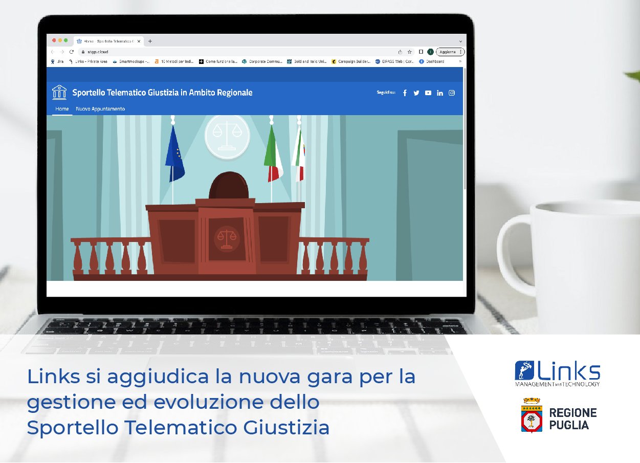 Links si è aggiudicata la nuova gara per la gestione ed evoluzione dello Sportello Telematico Giustizia nella quale saranno attivati nuovi servizi digitali per il rilascio di Certificati e di copie dei fascicoli penali, per la valorizzazione del ruolo del terzo settore nell’affidamento dei beni confiscati o sottoposti a sequestro, per la gestione del Decreto Penale e per il Gratuito Patrocinio.