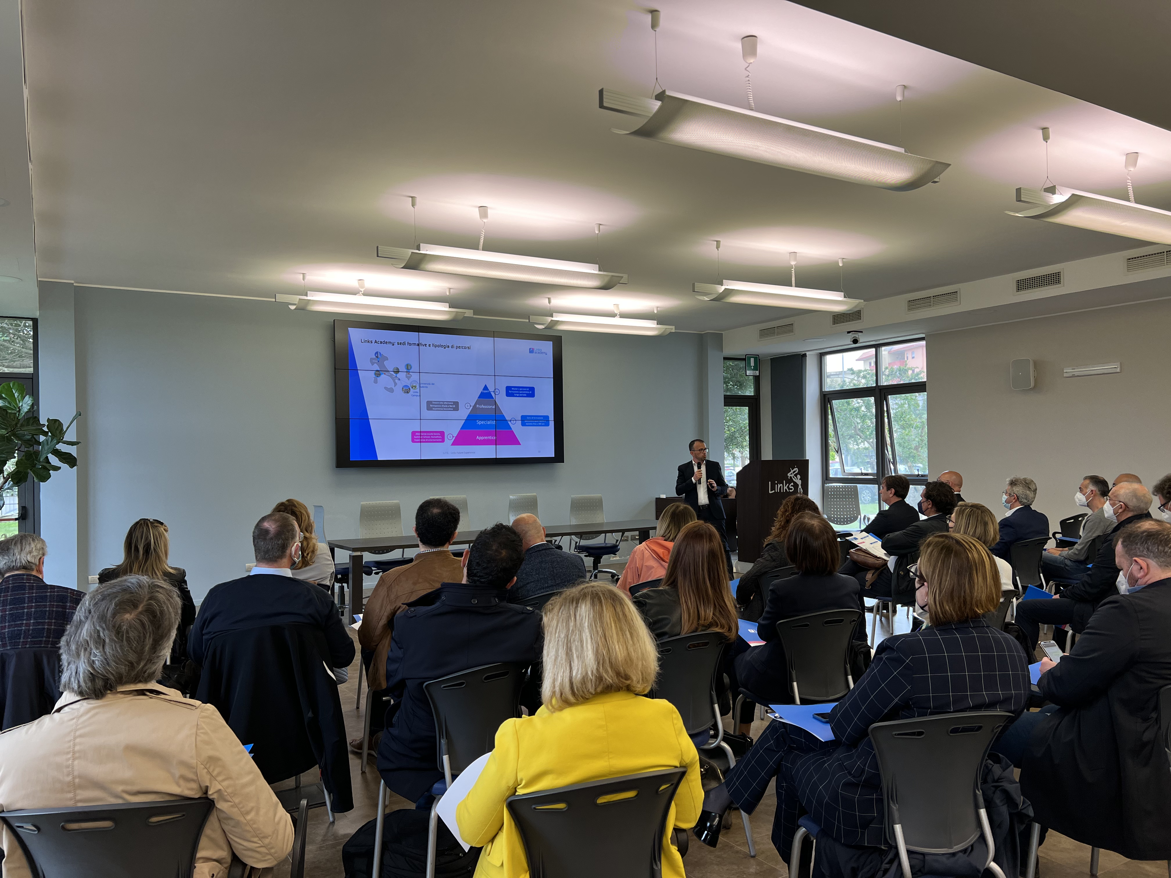 Alessandro Sannino, Professore ordinario di scienza e tecnologia dei materiali di Unisalento, ha spiegato come formazione, ricerca e impresa siano strettamente collegate. “Non si può fare buona formazione senza fare buona ricerca. E da una buona attività di ricerca ed investimento in conoscenza si fa buona impresa, come avviene in Links. Ai giovani talenti dobbiamo trasferire la fiducia di poter intraprendere percorsi di formazione e professionali come quelli che Links costruisce. Se continueremo a sostenere i nostri giovani nel mettere a terra le proprie idee, tra vent’anni non faremo una seconda silicon Valley, ma sarà la silicon Valley ad avere noi come riferimento”.